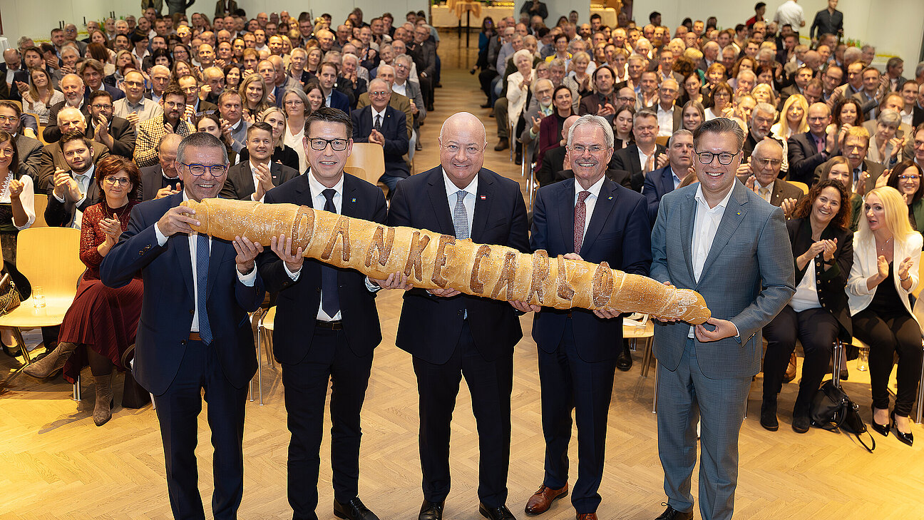 Neben Bundeskanzler Christian Stocker und KO Kurt Hackl kamen auch die Abgeordneten zum Nationalrat Angela Baumgartner und Andreas Minnich und Landtagsabgeordneter Manfred Schulz, VP-Landesgeschäftsführer LAbg. Matthias Zauner.