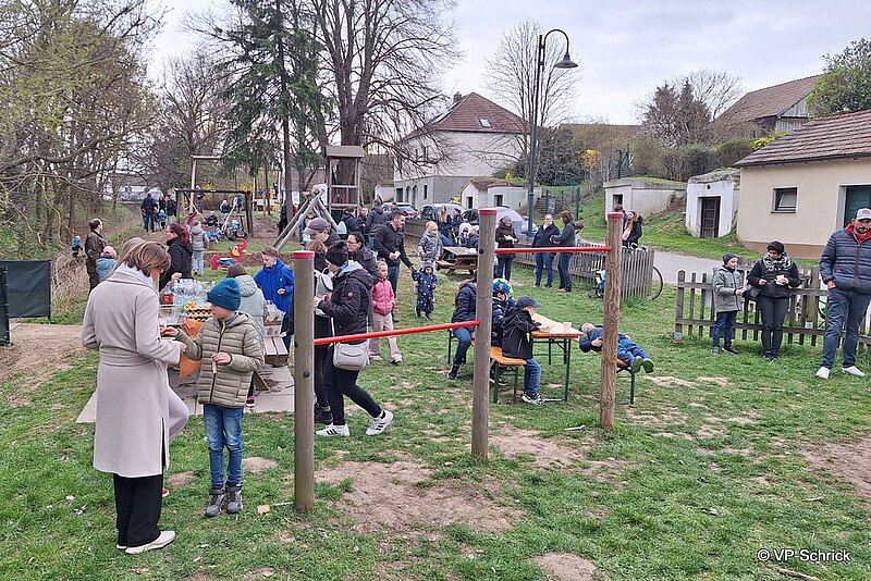 Am 4. April 2026 lud die ÖVP-Ortsgruppe Schrick zur Ostereiersuche mit anschließendem Eierpacken ein. Die vier Gemeinderäte Marcello Tazzioli, Philipp Körner, Dietmar Moik und Astrid Reuter konnten zahlreiche Besucher am Spielplatz Brunnenweg begrüßen.